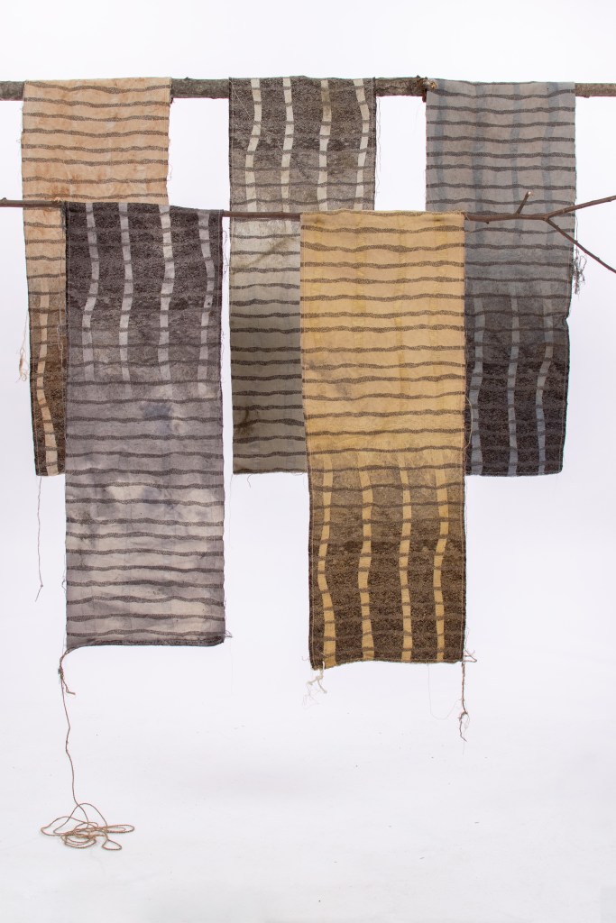 The growing interest in sustainability within textile design often focuses on materials and their impact on the landscape. However, this project emphasizes a deeper collaboration with the landscape in textile design, where the landscape itself influences the design outcome. It aims to explore methods of collaboration with the landscape to give the landscape agency in the design process within a weaving and dyeing context, resulting in textiles that are not only visually compelling but also tell the story of their relationship with the landscape. The results of this project demonstrate six different methods that involve the landscape as an active agency in the design process to create a collection of textiles that touch on pattern, colour and texture and have sensorial aspects. This approach not only leads to innovative textile expressions but also creates a deeper awareness and connection between textiles and the landscape, leading to more sustainable design practices.